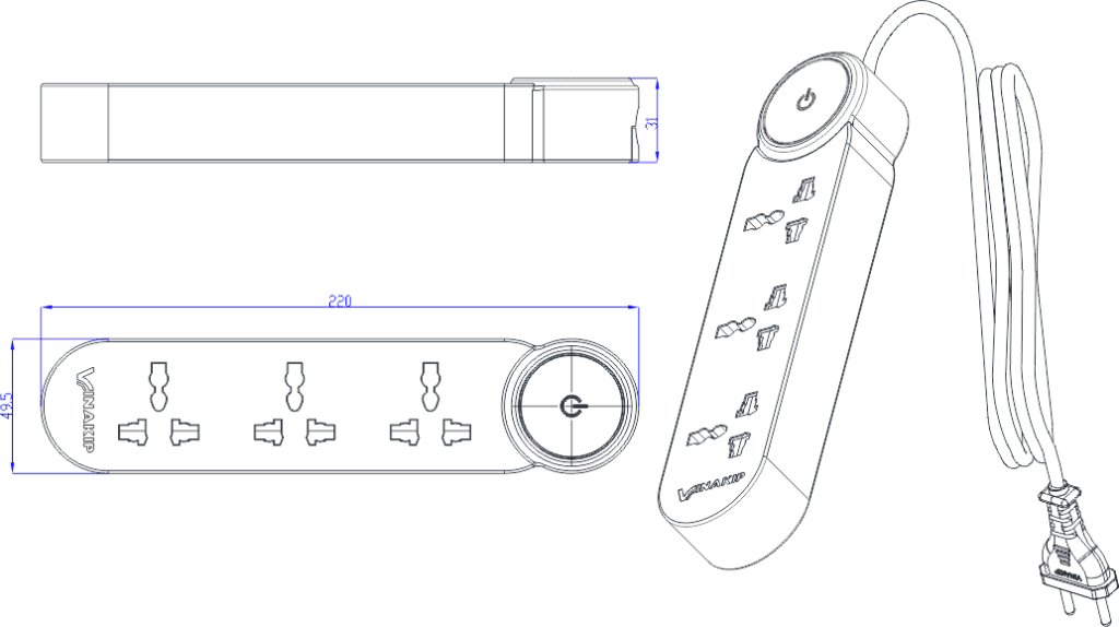 · Kiểu dáng riêng biệt, đơn giản, gọn nhẹ,thích hợp khi sử dụng với các thiết bị điện trong gia đình, văn phòng …